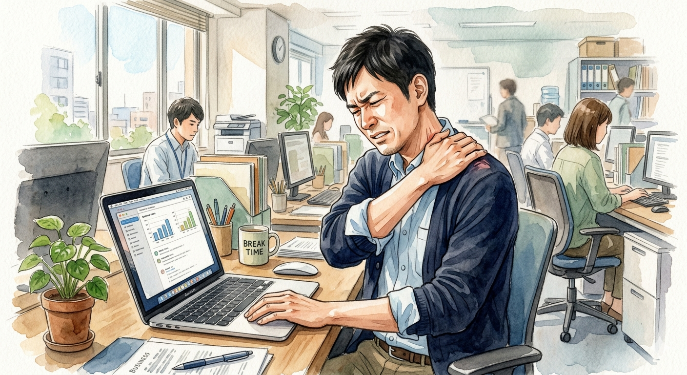 デスクワークやスマホの時間が長いと、